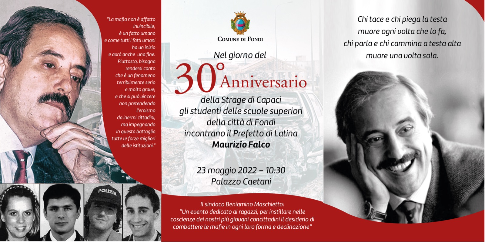 FONDI, nel giorno del 30° anniversario della Strage di Capaci gli studenti incontrano il prefetto di Latina Maurizio Falco