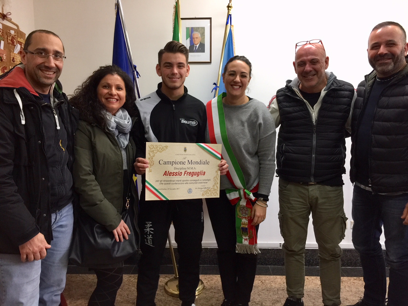 Cisterna, attestato di merito del sindaco ad Alessio Freguglia, giovane cisternese campione mondiale di MMA