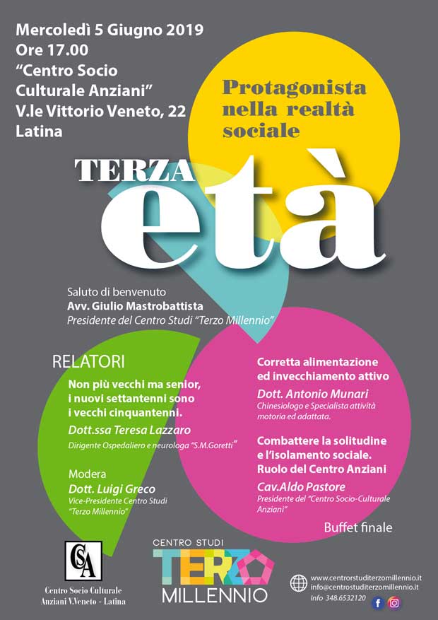 Latina, si terrà presso il Centro Socio Culturale Anziani il Convegno”Terzo Millennio”