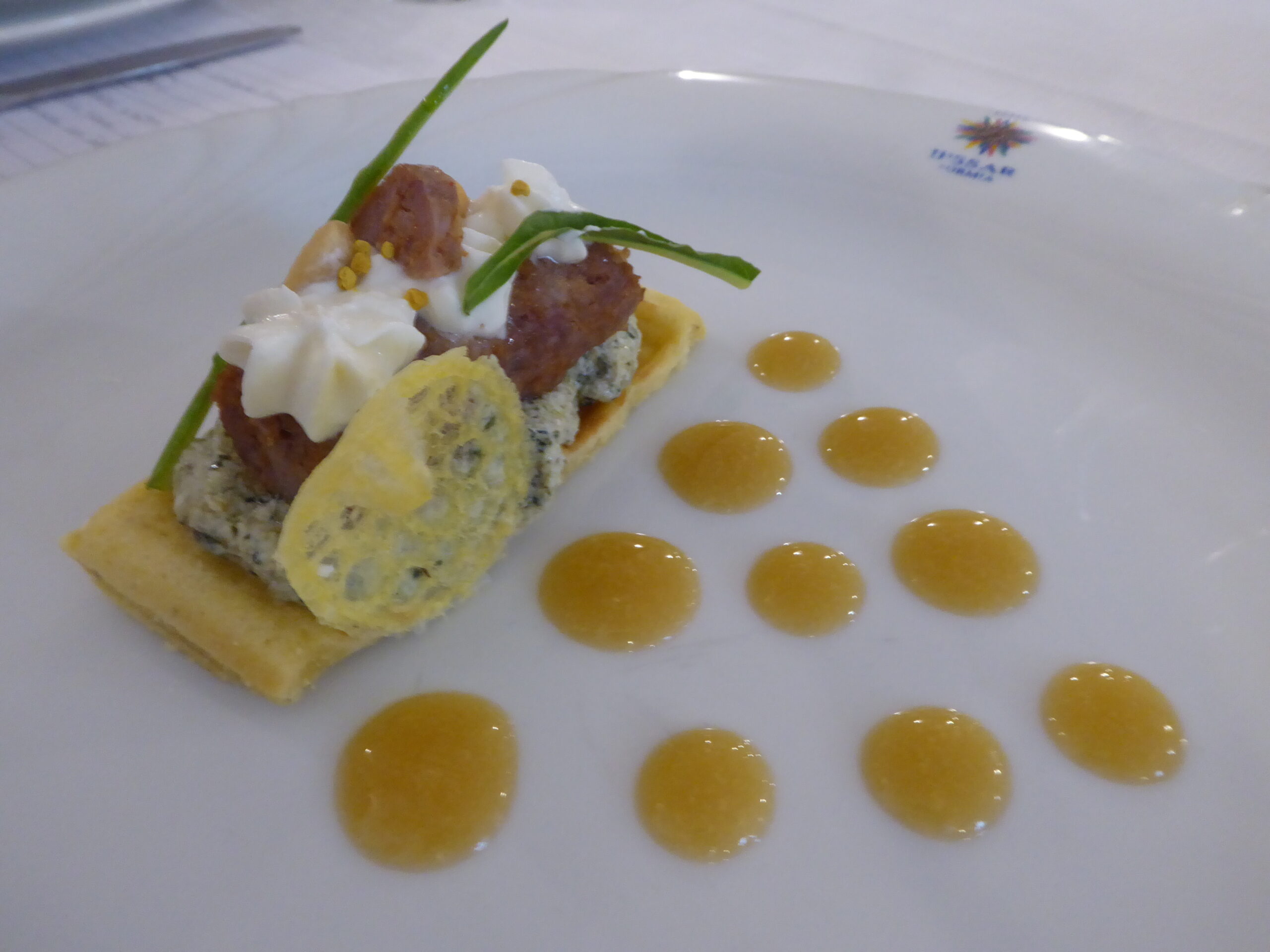 “Waffle alle nocciole con crema di puntarelle, salsiccia di Monte San Biagio…
