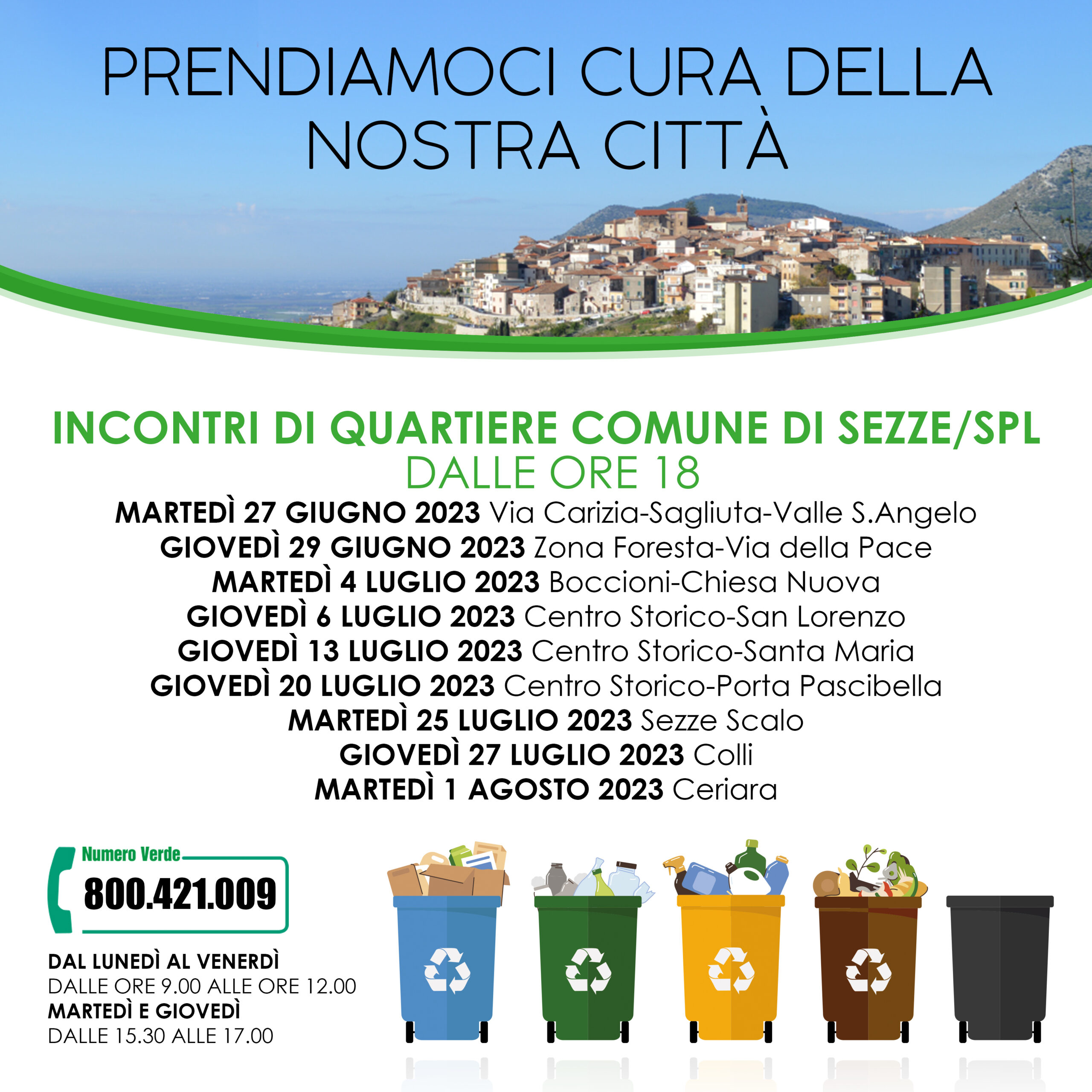 SEZZE, raccolta porta a porta su tutto il territorio: al via gli incontri di quartiere