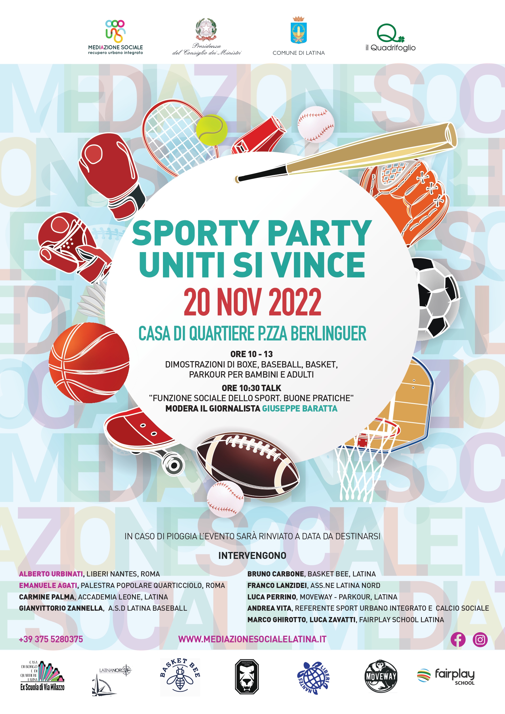 LATINA, sport e integrazione, domenica l’evento “Sporty Party” presso la Casa di quartiere di piazza Berlinguer