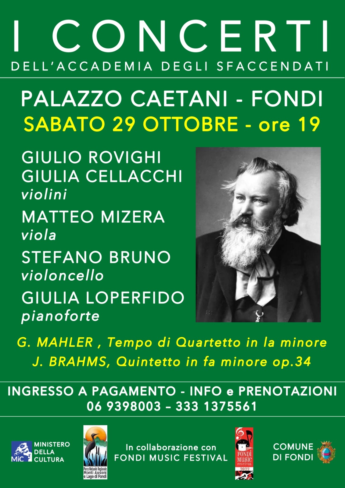 FONDI, Brahms e Mahler: sabato a Palazzo Caetani tornano i concerti dell’Accademia degli Sfaccendati