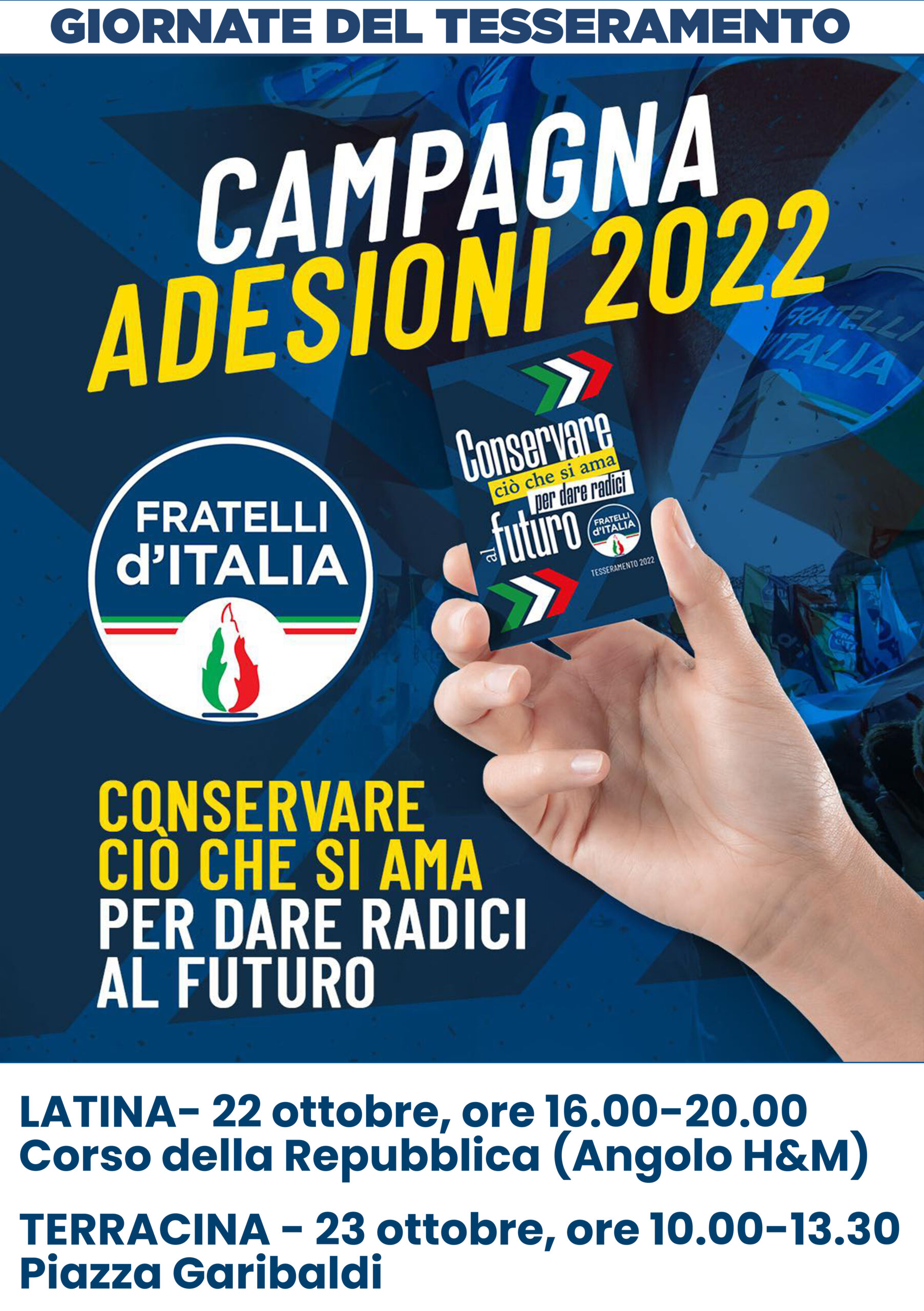 Prosegue la campagna adesioni 2022 di Fratelli d’Italia in provincia di Latina,…