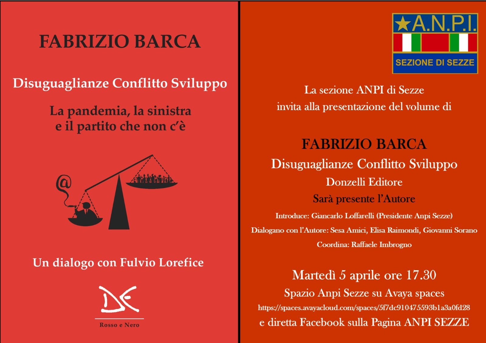 SEZZE, oggi la presentazione del volume di Fabrizio Barca Disuguaglianze Conflitto Sviluppo. La pandemia, la sinistra e il partito che non c’è organizzato dall’Anpi