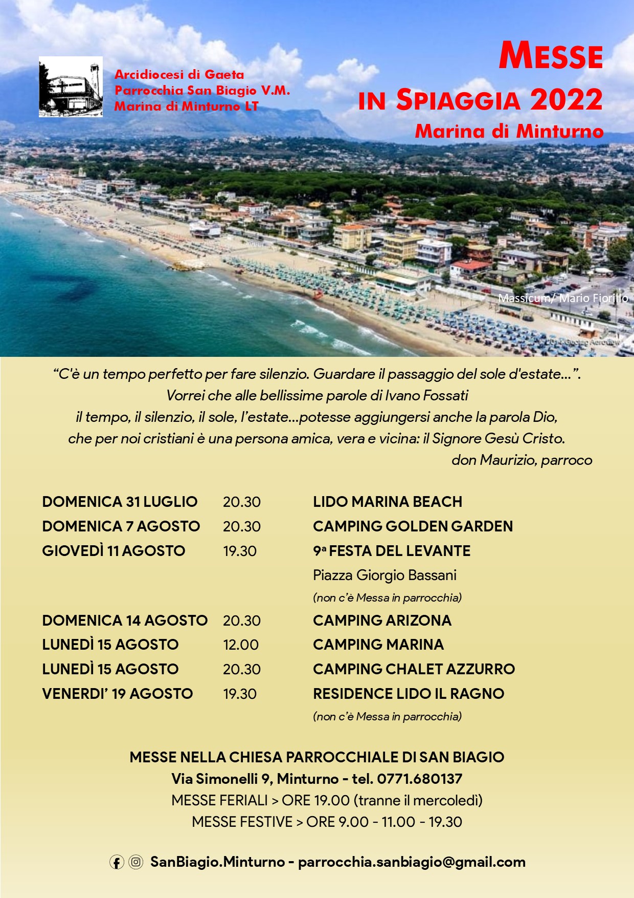 MINTURNO, al via le Messe in Spiaggia Estate 2022