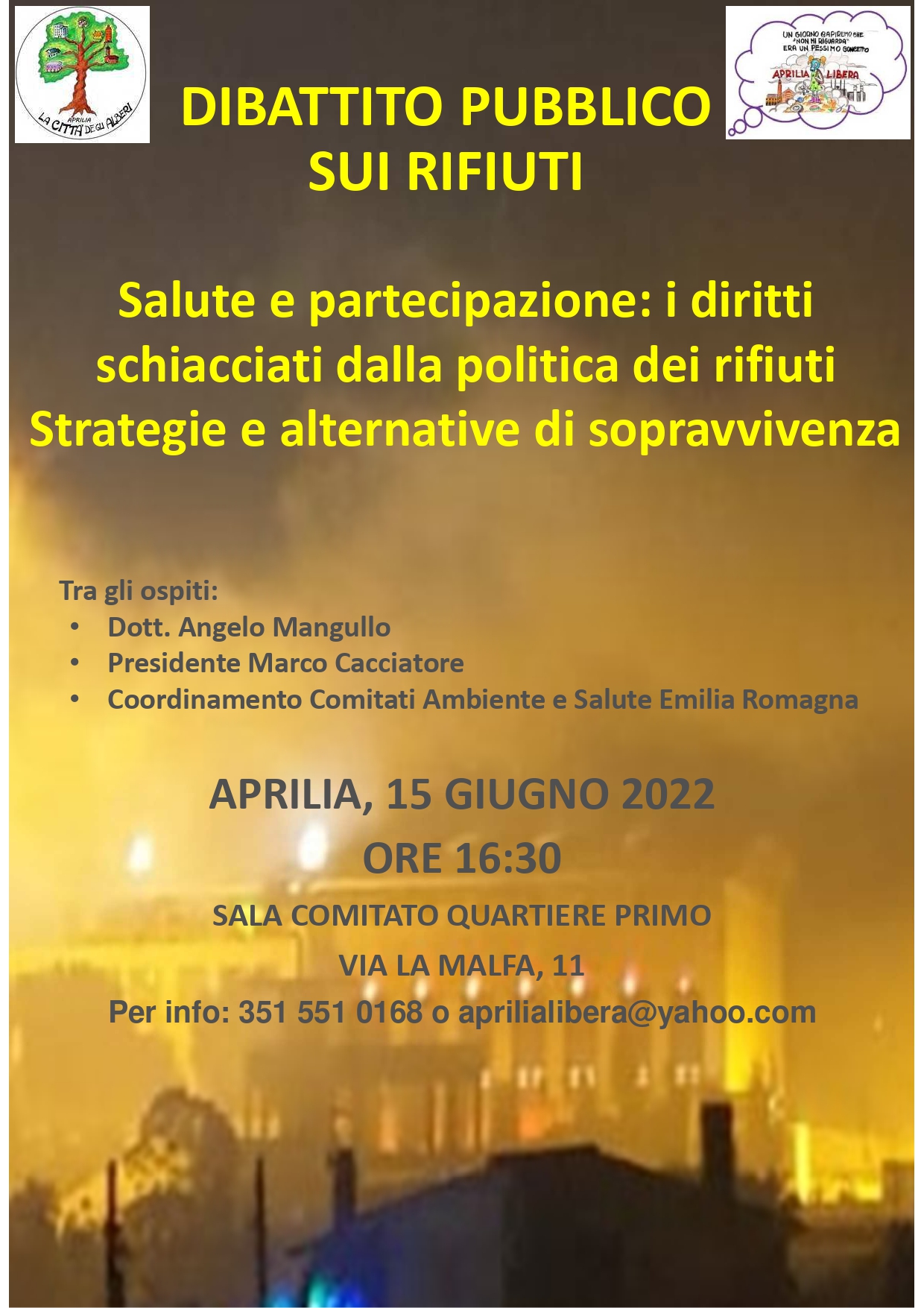 APRILIA, appuntamento mercoledì per l’assemblea “Salute e partecipazione: i diritti schiacciati dalla politica dei rifiuti. Strategie e alternative di sopravvivenza”