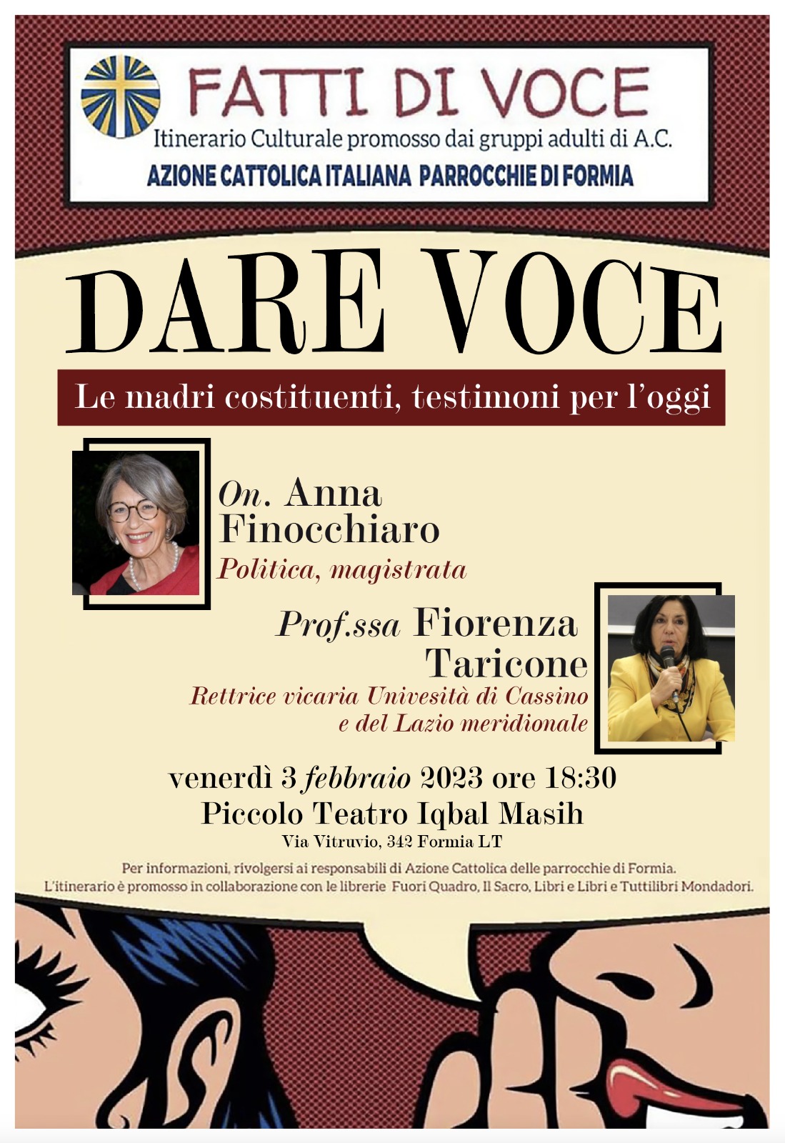 FORMIA, incontro con Anna Finocchiaro e Fiorenza Taricone per Azione cattolica