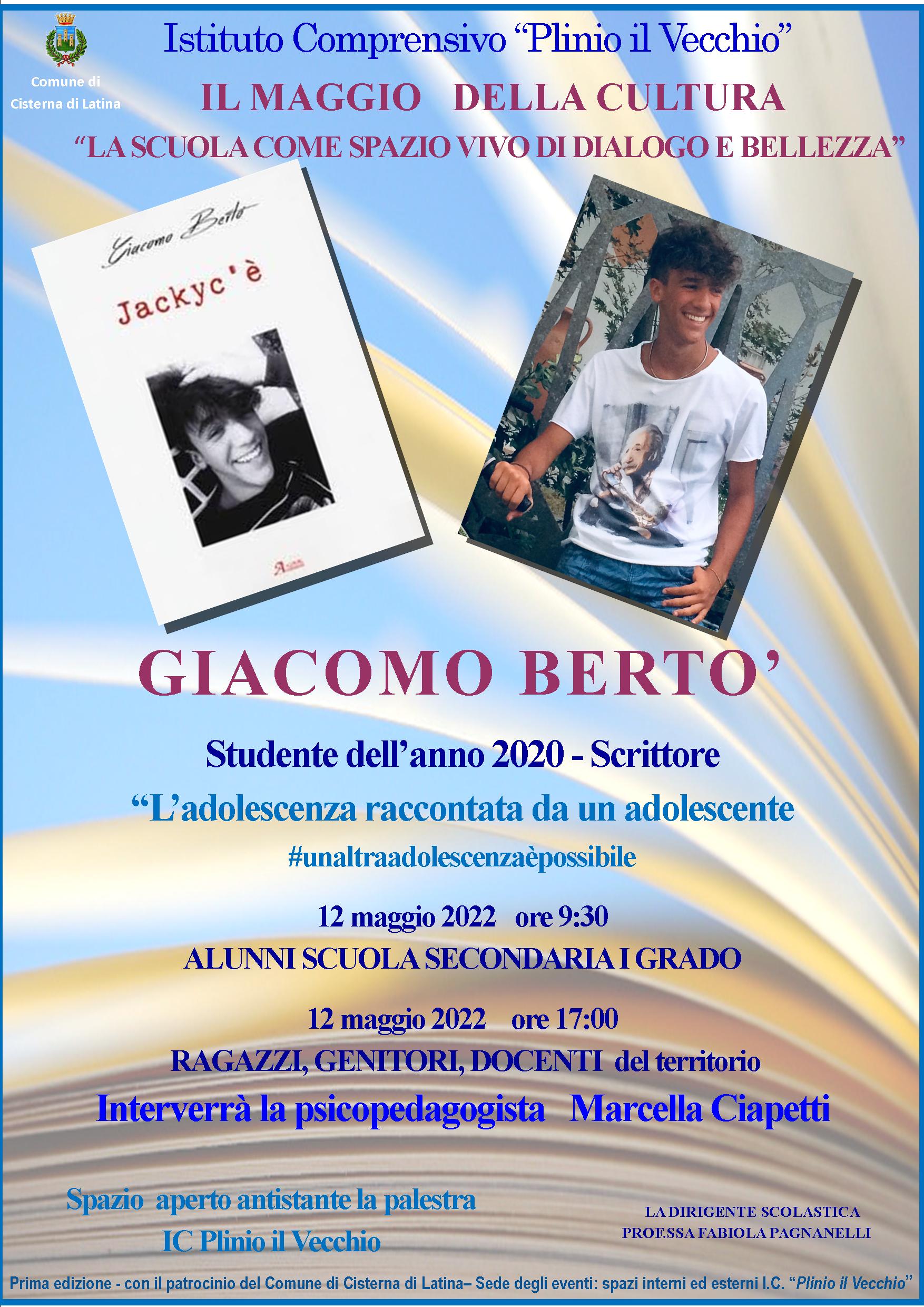 CISTERNA, per il “Maggio della Cultura”, giovedì 12 Giacomo Bertò all’Istituto Comprensivo Plinio Il Vecchio