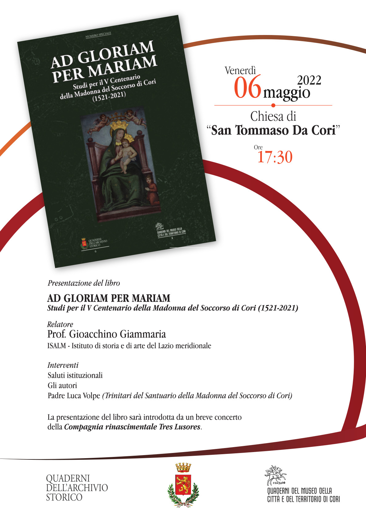 CORI, AD GLORIAM PER MARIAM: venerdì la presentazione del volume curato da Clemente Ciammaruconi ed Ettore Di Meo