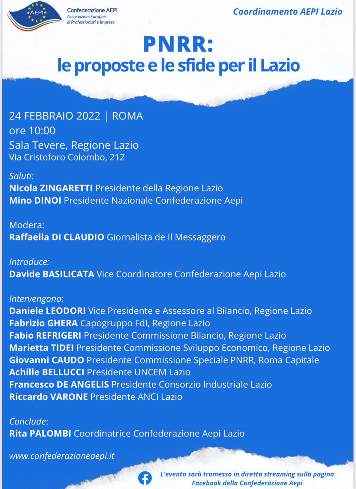 “PNRR, le proposte e le sfide per il Lazio” è il tema…
