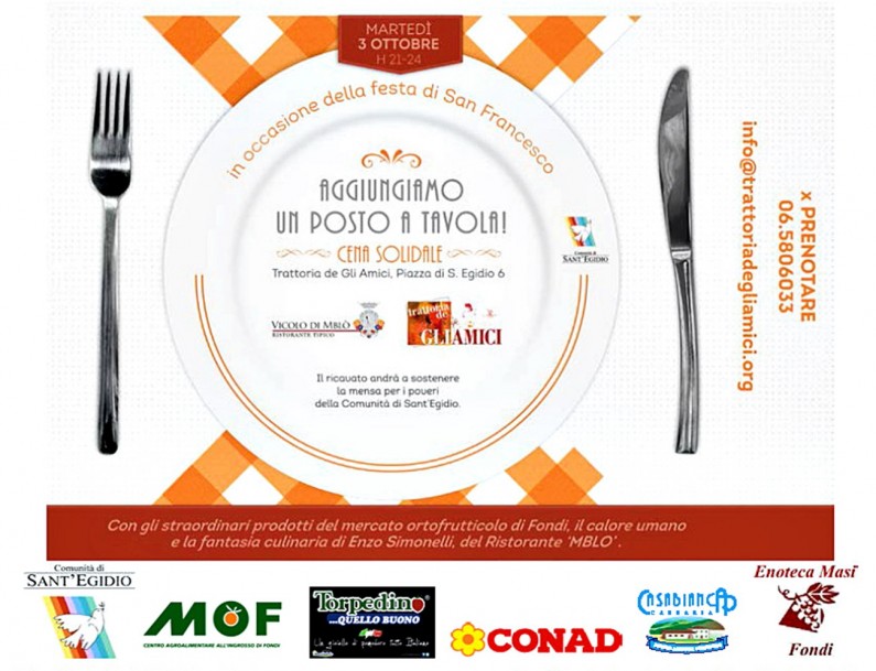 Fondi, cena di beneficenza “Aggiungiamo un posto a tavola”