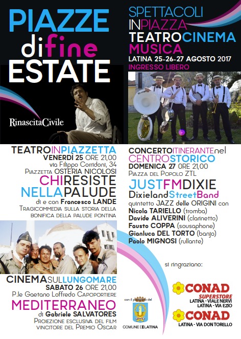 Latina, Piazze di fine estate: teatro, cinema e musica in tutta la città