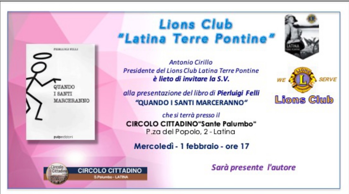 LATINA, “Quando i santi marceranno”: domani Pierluigi Felli al Circolo Cittadino