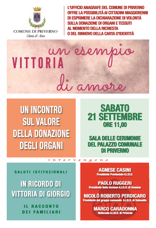 Priverno, il 21 settembre in programma un incontro sul valore della donazione degli organi