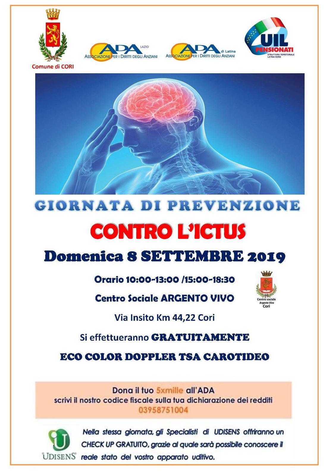 Cori, domenica 8 settembre si svolgerà la “Giornata di prevenzione contro l’ictus”