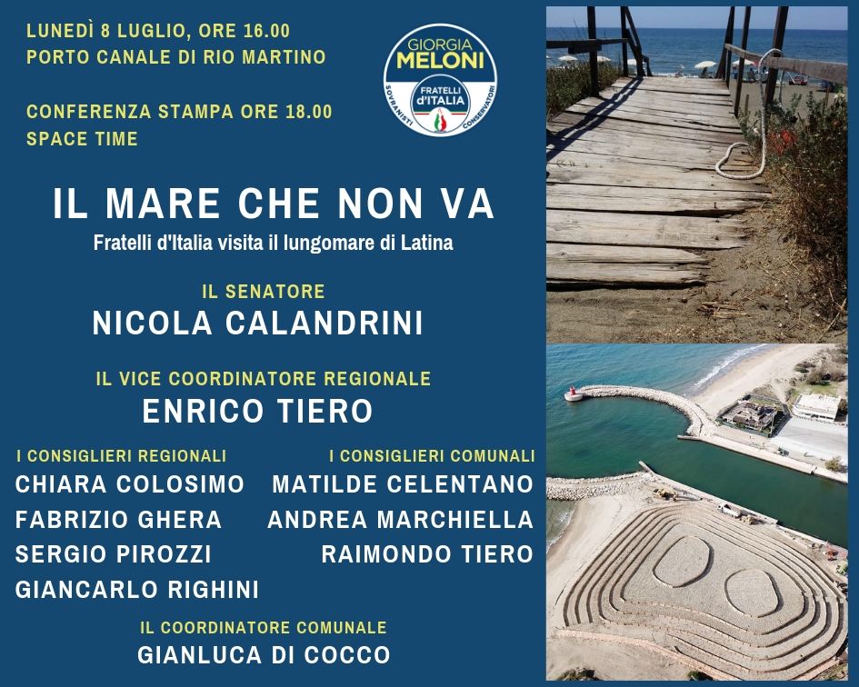 Una delegazione di Fratelli d’Italia visiterà il lungomare di Latina lunedì 8…