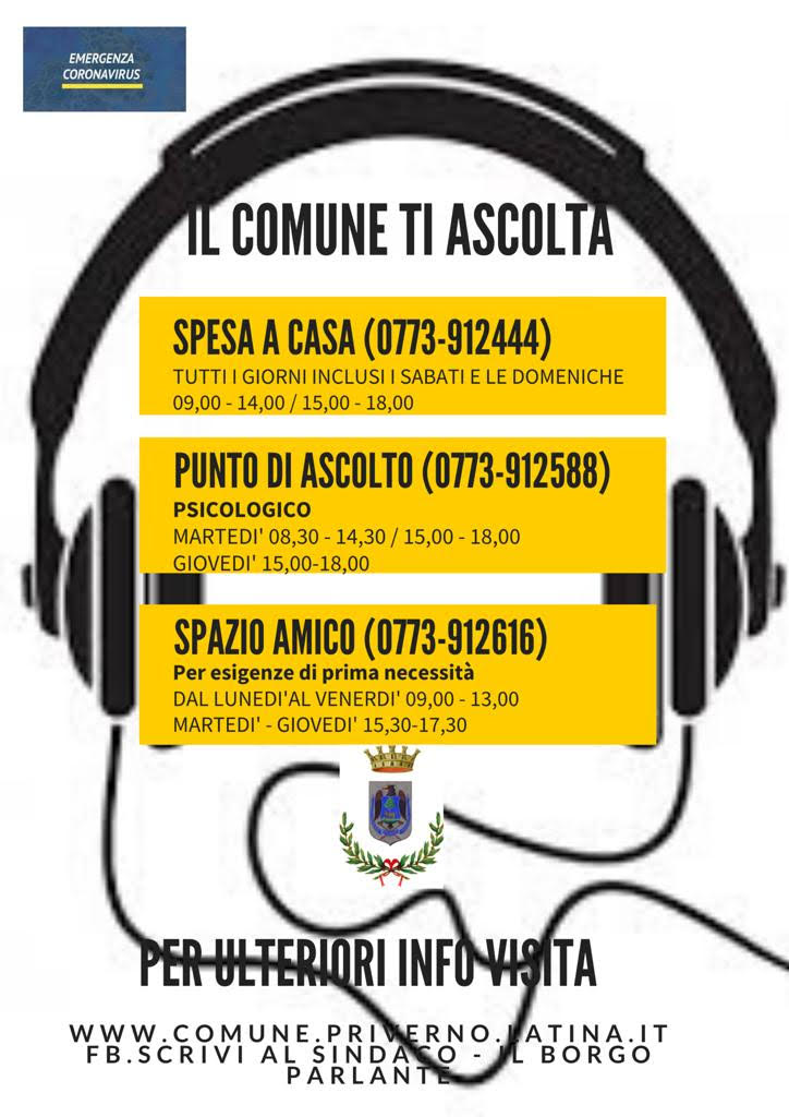 COVID-19, attivato anche a Lenola il servizio “Telefono che ascolta”