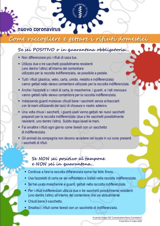 COVID-19, l’ISS detta le norme da seguire in merito alla raccolta differenziata dei rifiuti domestici
