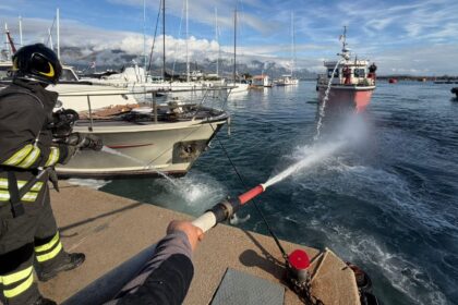 GAETA | Barca in fiamme al porto: l’esercitazione antincendio dei Vigili del Fuoco