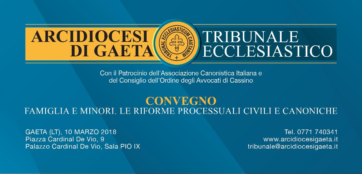 Gaeta, “Famiglia e minori. Le riforme processuali civili e canoniche”: convegno a cura del Tribunale ecclesiastico diocesano