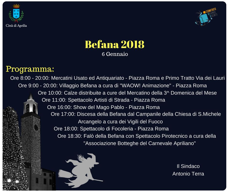 Aprilia, si conclude l’evento organizzato per le feste natalizie, con il volo della befana in Piazza Roma