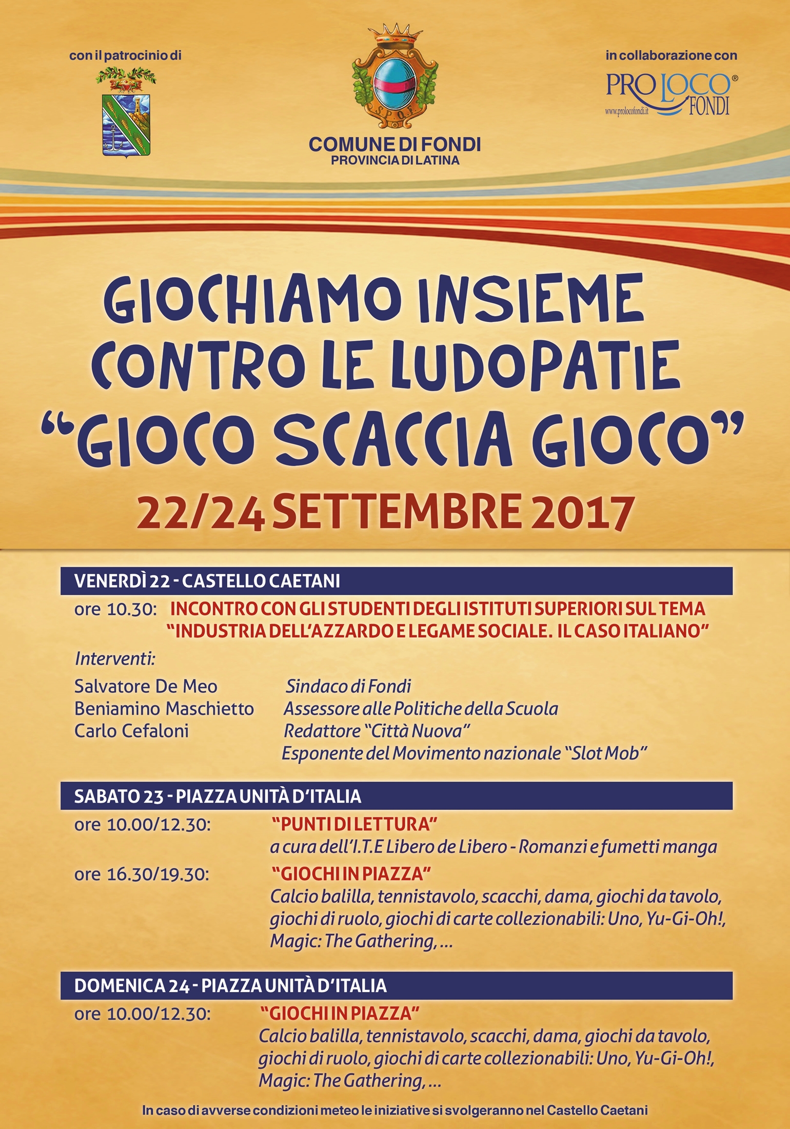 Fondi, “Gioco scaccia gioco”: manifestazione contro le ludopatie