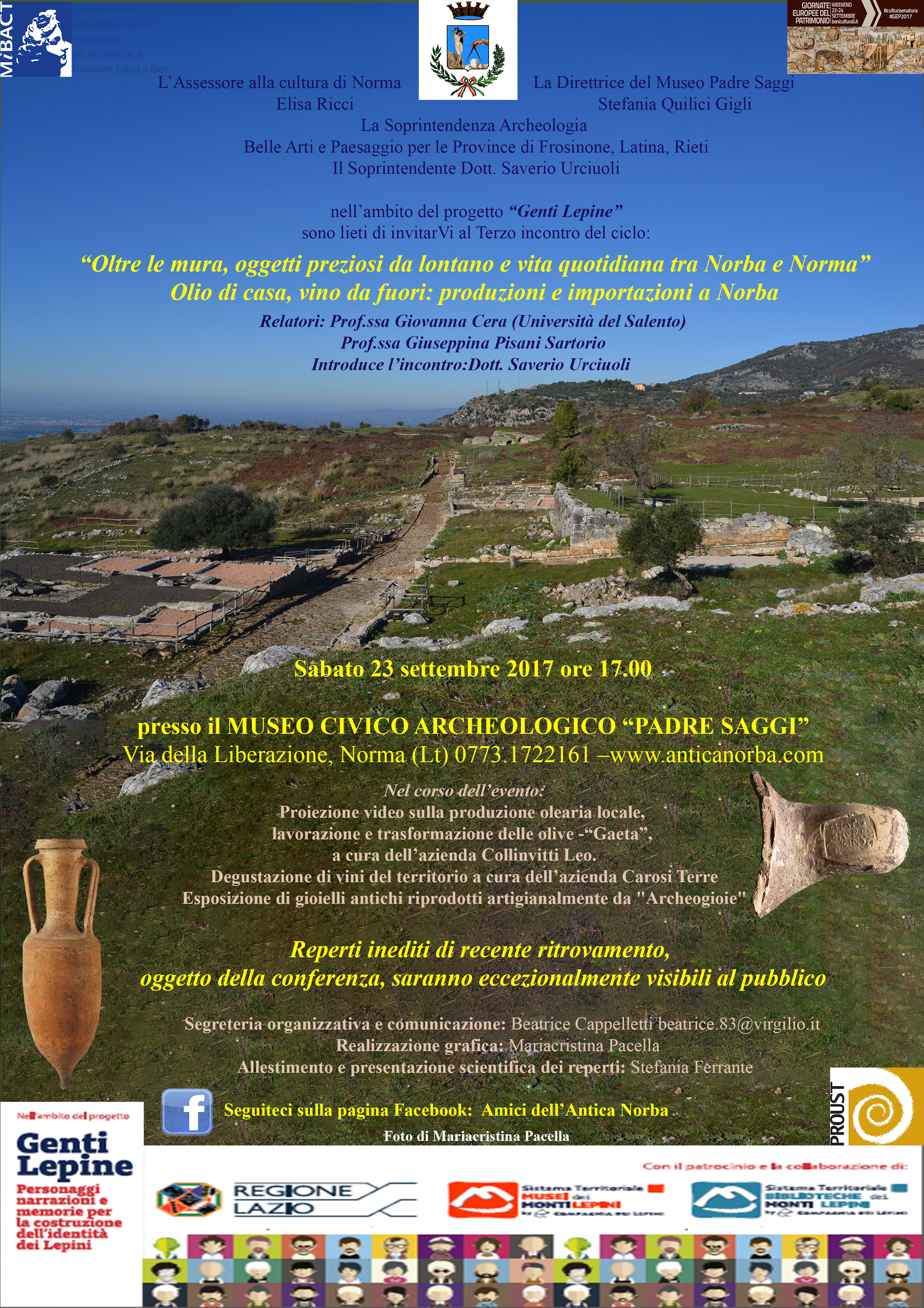 Norma, terzo incontro Genti Lepine: “Oltre le mura: oggetti preziosi da lontano e vita quotidiana tra Norba e Norma”