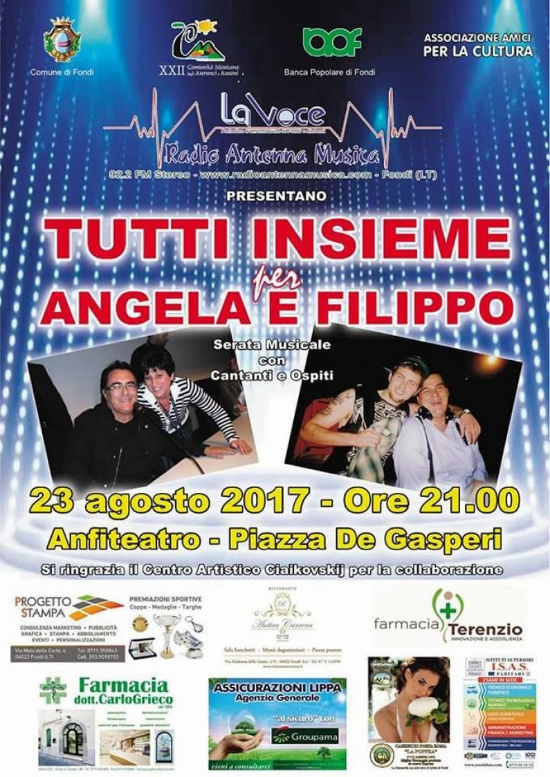 Fondi, Tutti insieme per Angela e Filippo: questa sera in piazza De Gasperi