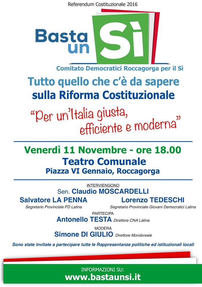 Il comitato Democratici Roccagorga per il Sì ha fissato per oggi pomeriggio…