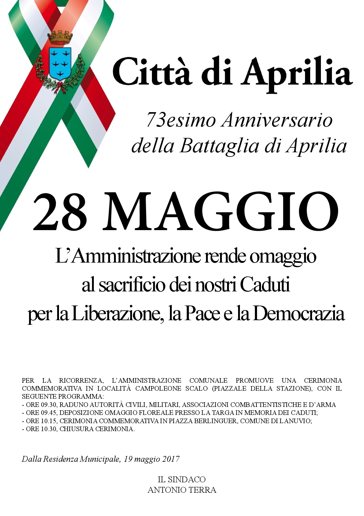Il Comune di Aprilia, in occasione del prossimo 28 maggio in cui…