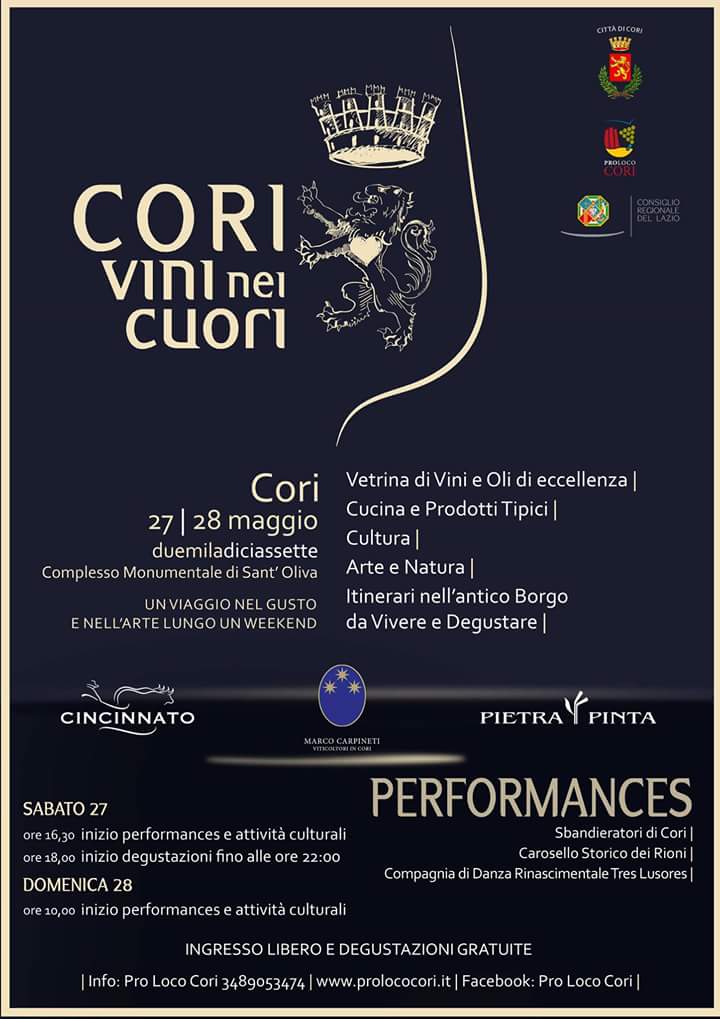 Cori, “Vini nei cuori”: un viaggio nel Gusto e nell’Arte, lungo un weekend