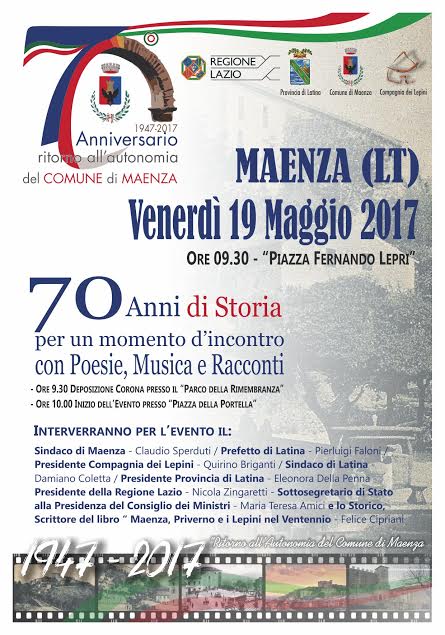 Maenza, 70 anni di storia con poesie musica e ricordi