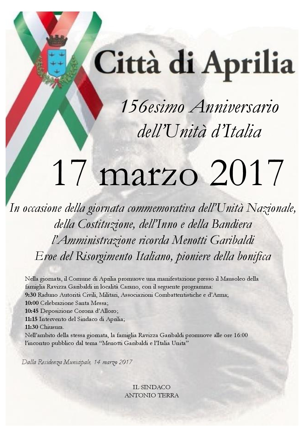 Ricorre il prossimo venerdì 17 marzo il 156esimo Anniversario della Dichiarazione dell’Unità…