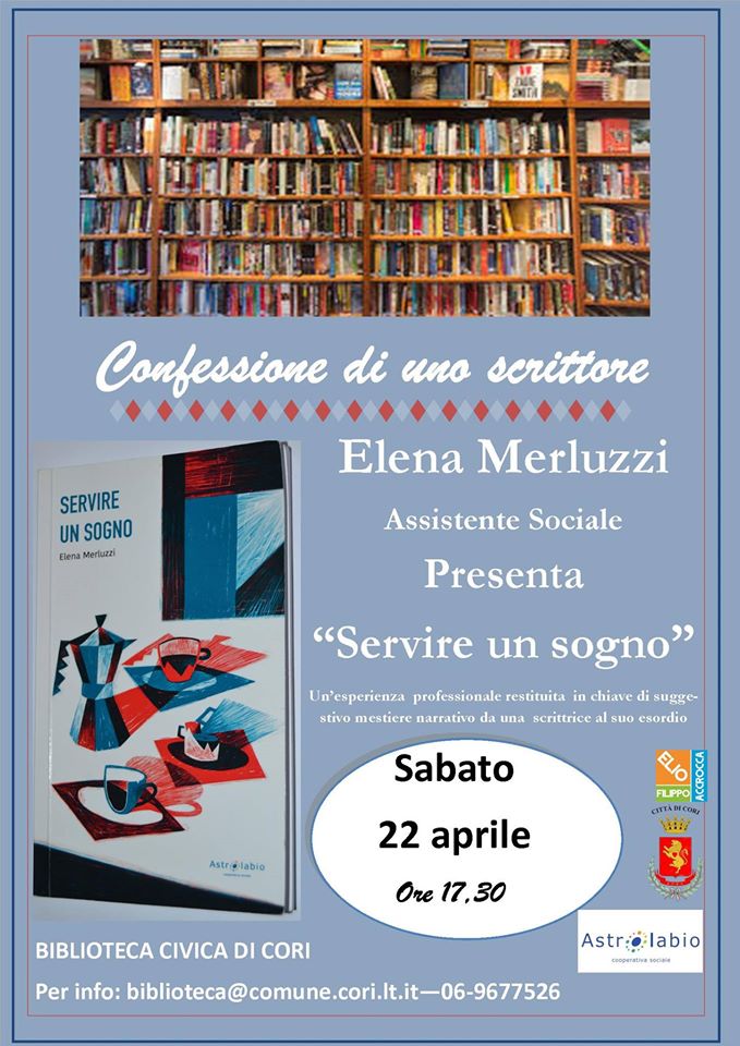 Cori, Confessioni di uno scrittore: Elena Merluzzi presenta “Servire un sogno”