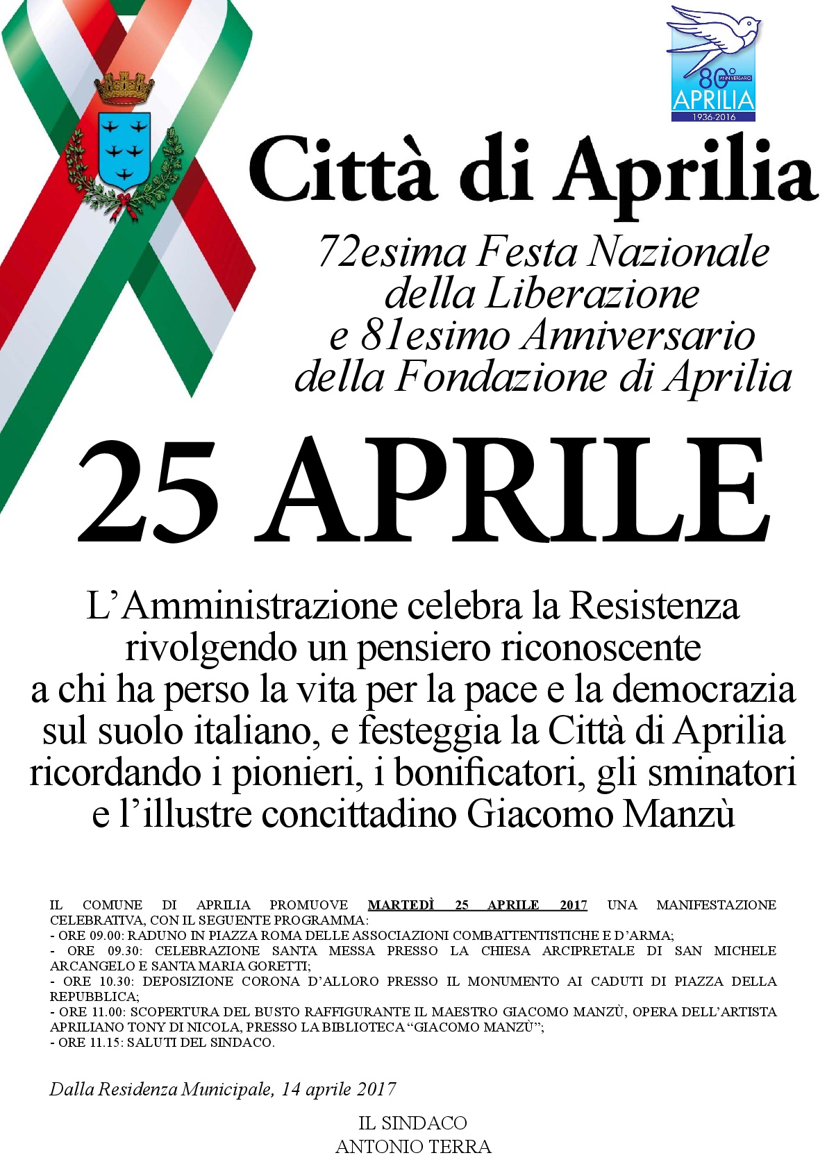 Aprilia, cerimonia istituzionale per l’81esimo Anniversario della Fondazione apriliana
