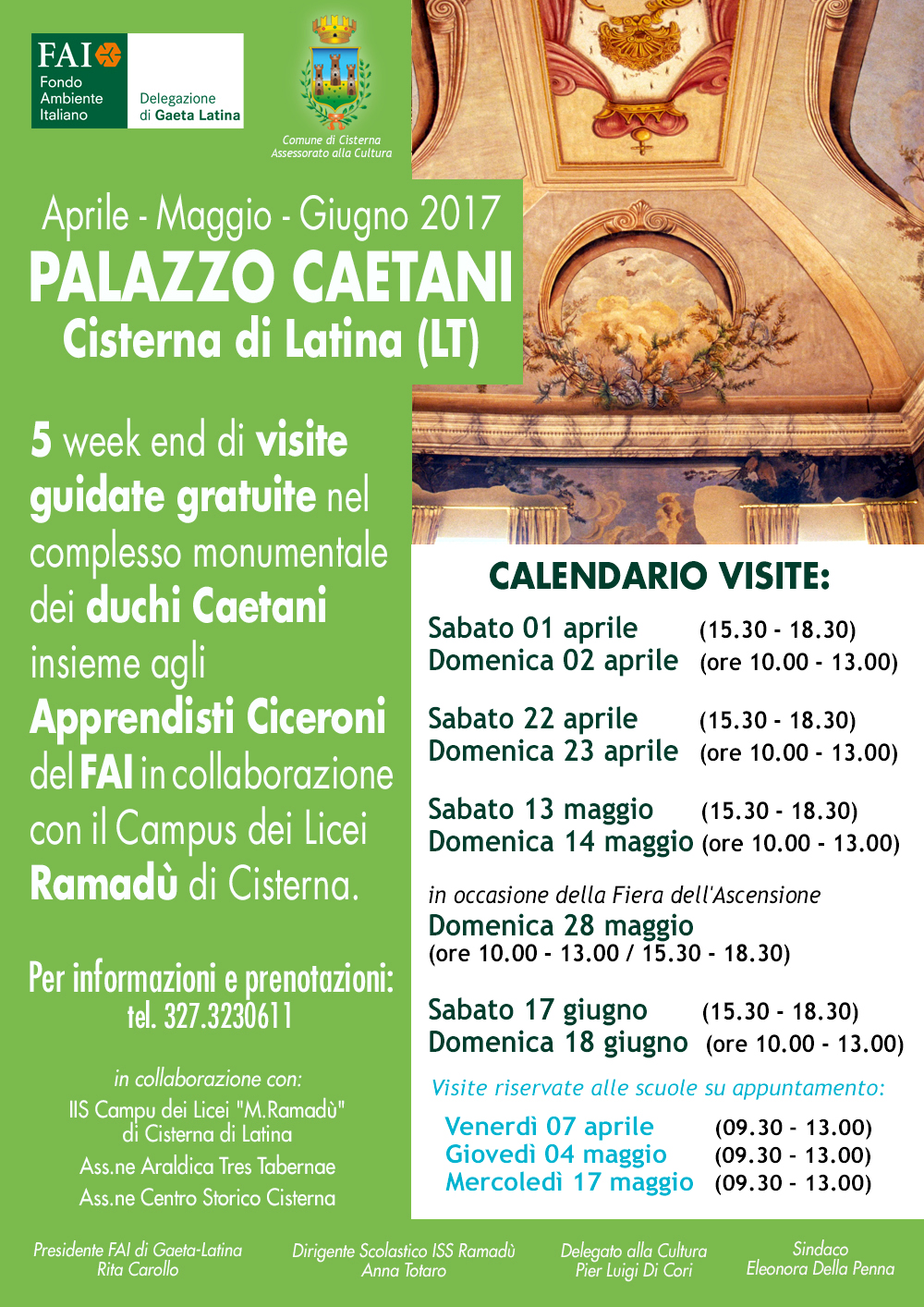 Cisterna, 5 week end di visite gratuite a Palazzo Caetani