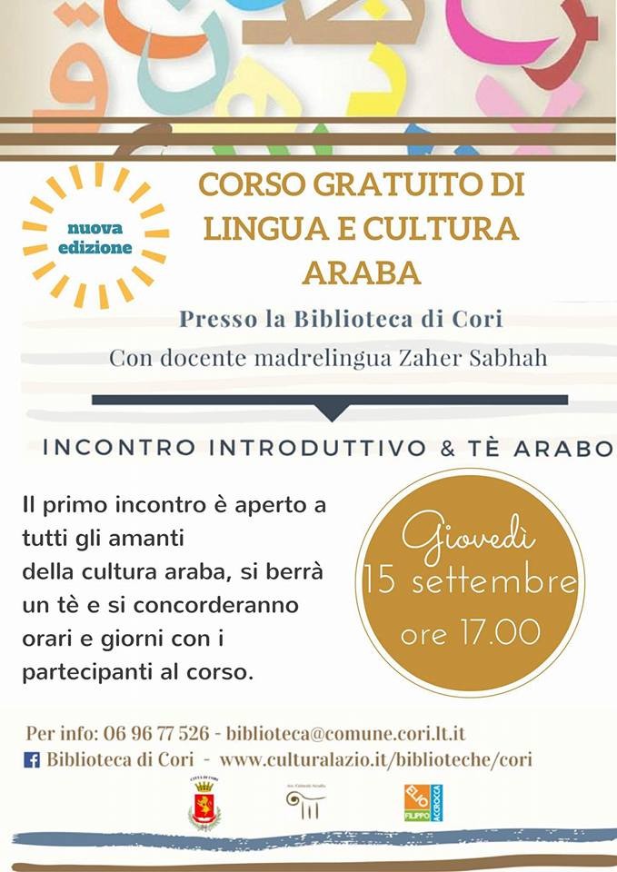 Cori: corso gratuito di lingua e cultura araba con lo chef Zaher Eliass Sabhah