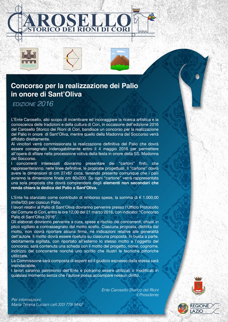 Carosello Storico dei Rioni di Cori 2016: concorso per la realizzazione del Palio in onore di Sant’Oliva
