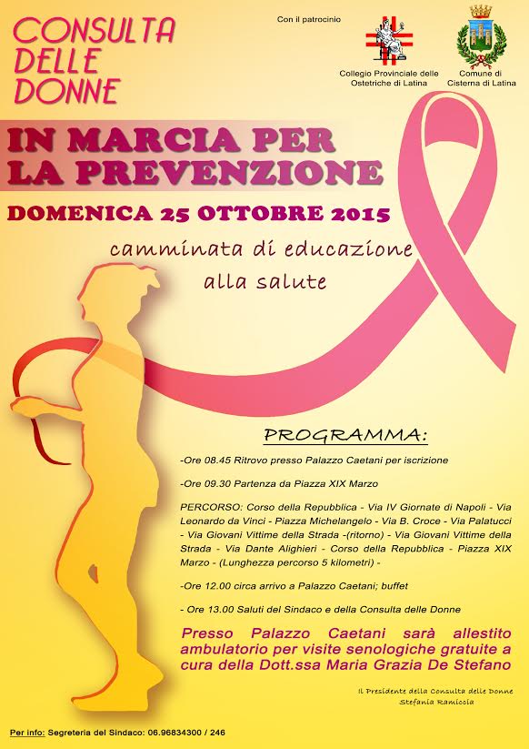 Cisterna, domenica camminata di sensibilizzazione sulla prevenzione e visite senologiche gratuite
