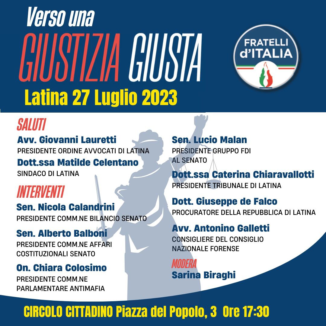 LATINA, riforme giustizia governo Meloni: giovedì il Convegno al Circolo Cittadino