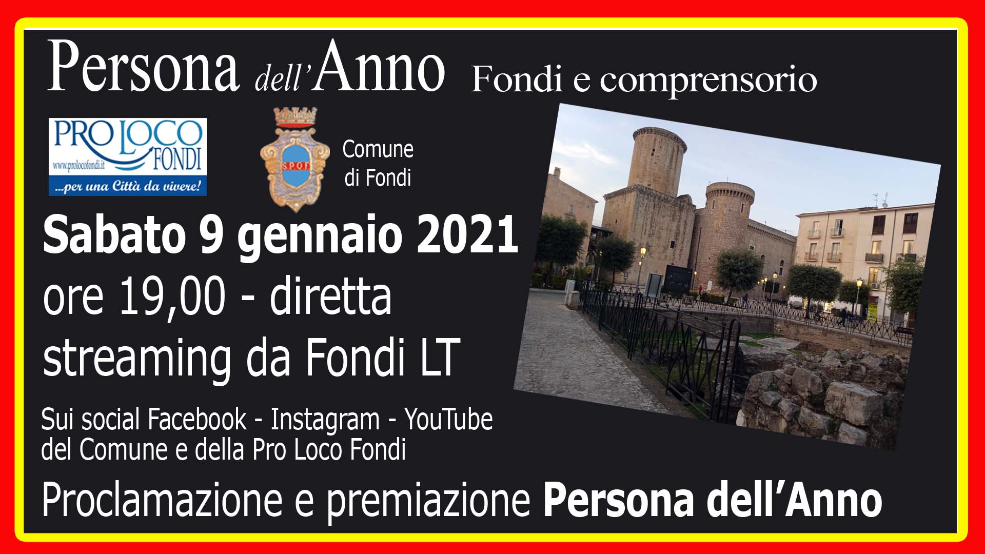 FONDI, cerimonia premiazione di premiazione della “Persona dell’anno” in streaming sabato 9 gennaio