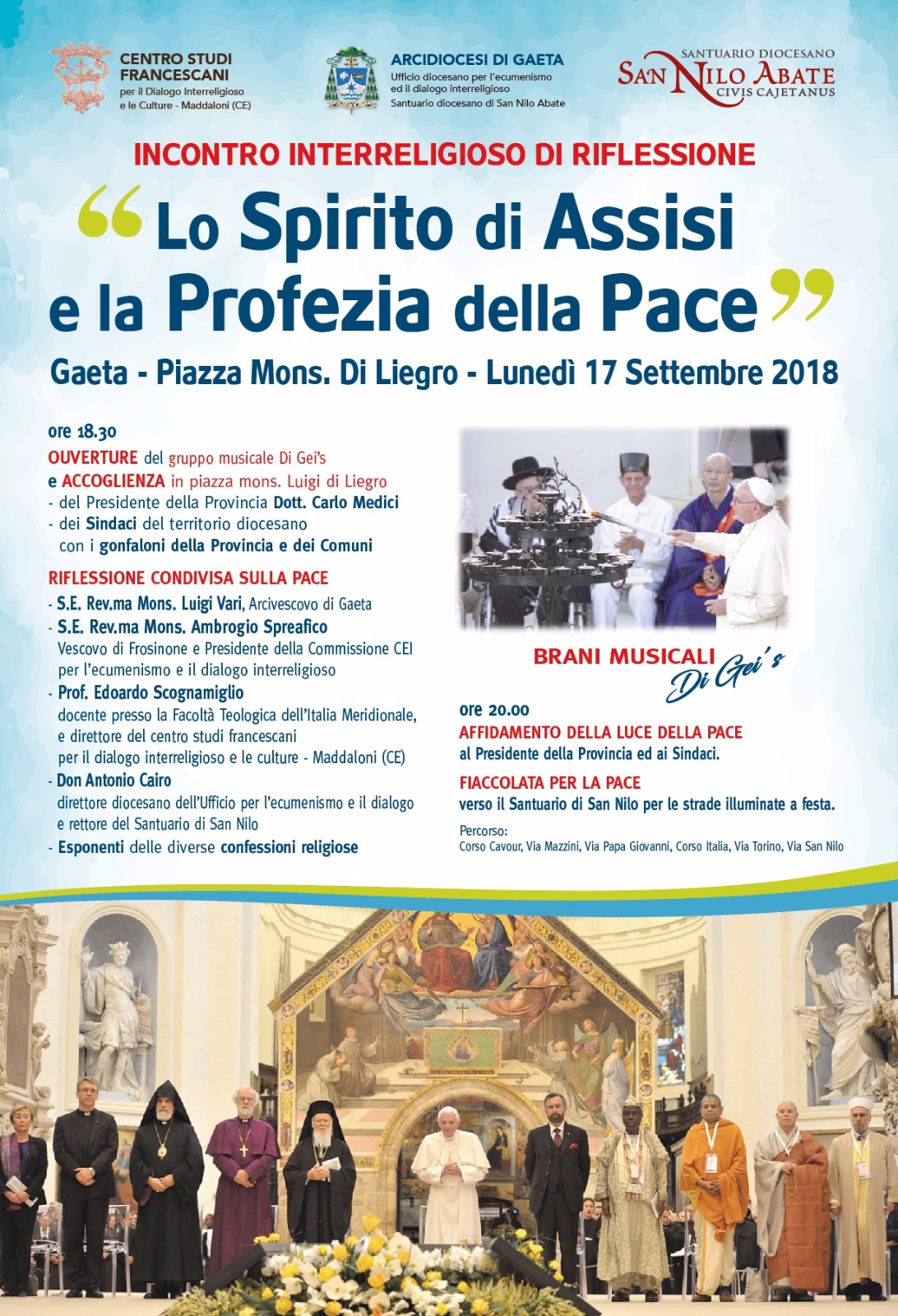 Gaeta, lunedì l’incontro interreligioso “Lo Spirito di Assisi e la Profezia della Pace”