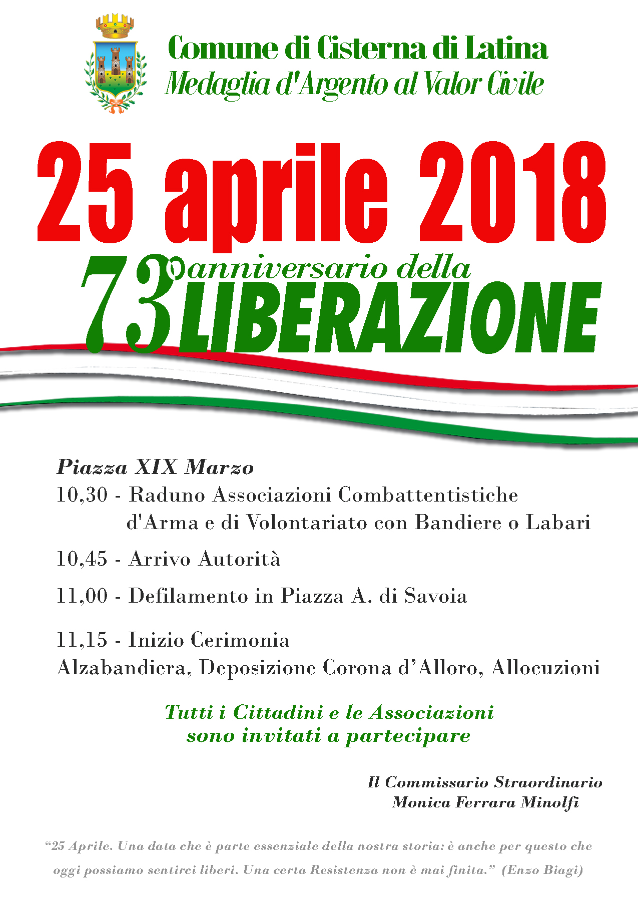 Cisterna, oggi il 73esimo anniversario della Liberazione