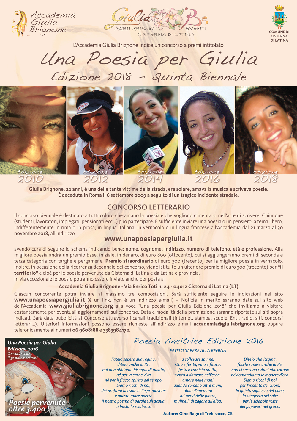 Cisterna, aperte le iscrizioni al 5° concorso “Una poesia per Giulia”