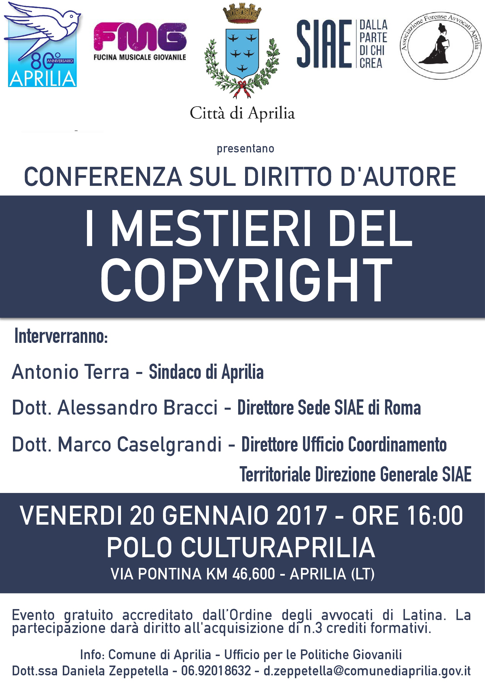 Aprilia, I mestieri del copyright: il 20 gennaio la conferenza sul Diritto d’Autore
