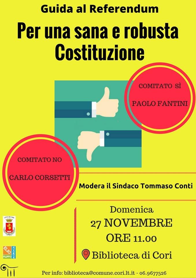 Cori, “Guida al Referendum. Per una sana e robusta Costituzione”: incontro di informazione e confronto costruttivo