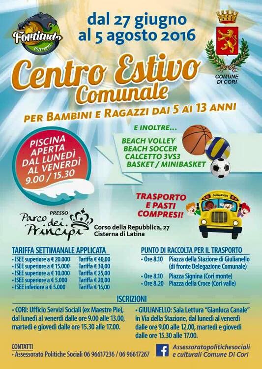 Da oggi sarà possibile iscriversi alle colonie estive 2016 organizzate dall’Assessorato alle…