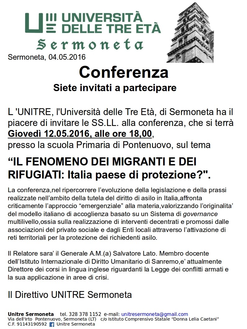 Sermoneta, l’università delle tre età promuove una conferenza sul fenomeno migranti