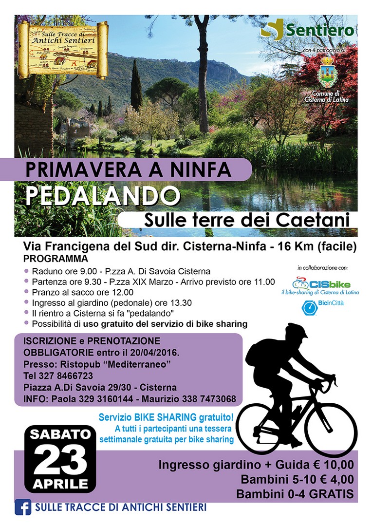 Cisterna, domani la passeggiata/pedalata fino a Ninfa